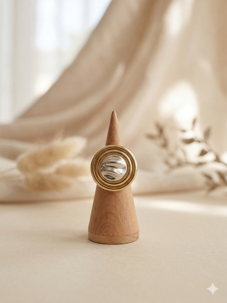 Anillo Olivia – Esfera Dorada con Plateada ✨