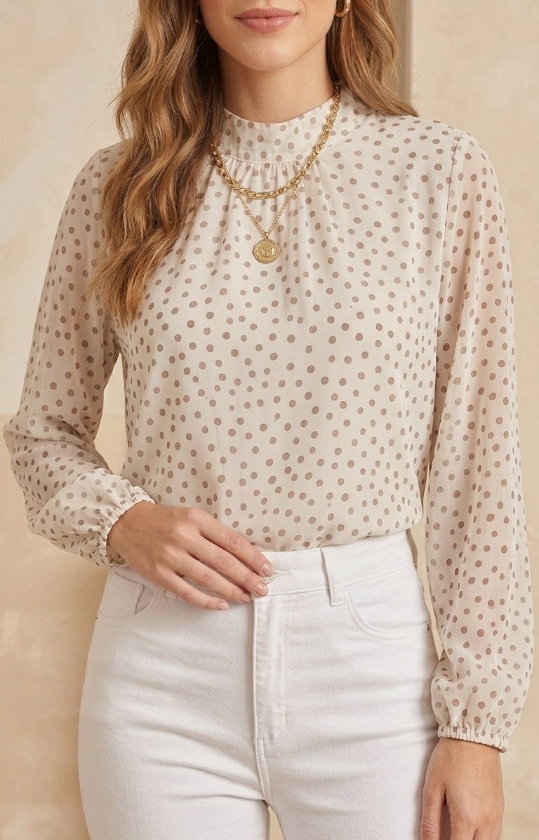 Blusa Blanca Polka Dots Café