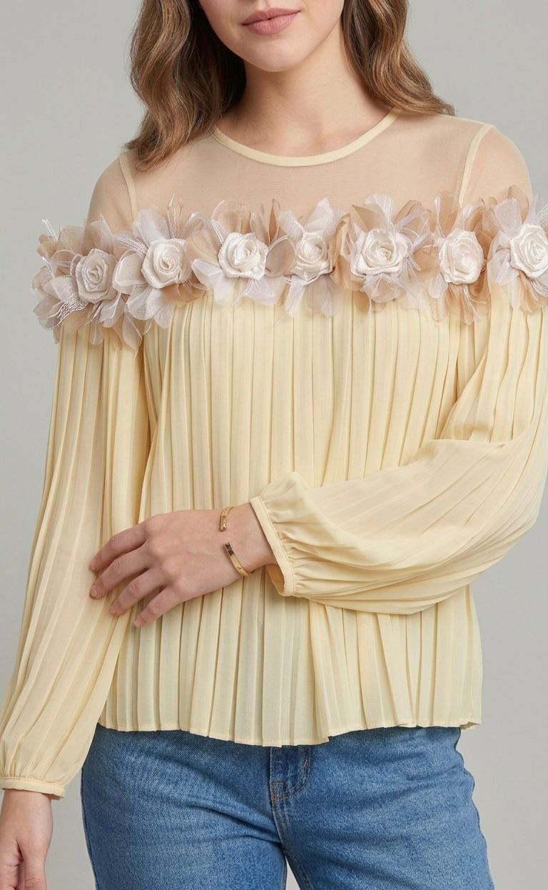 Una blusa amarilla con estampado floral que transmite alegría, frescura y un estilo muy femenino 💛 perfecta para crear looks luminosos, románticos y llenos de vida. Su diseño floral aporta un toque delicado que eleva cualquier outfit con facilidad ✨