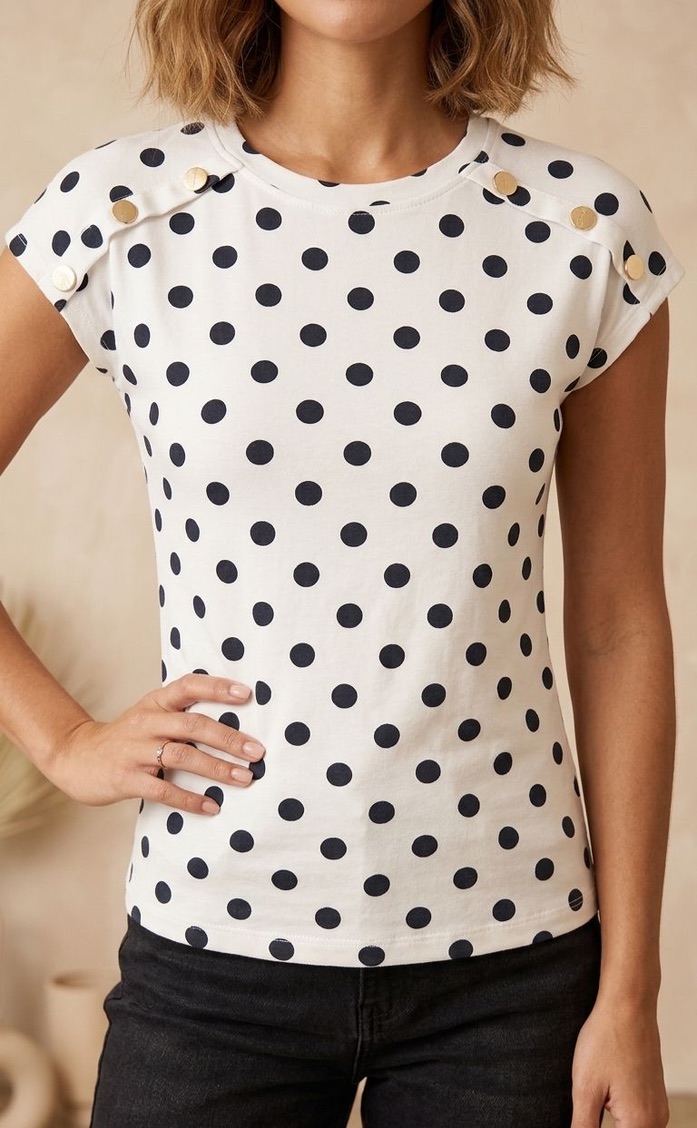 ⚪✨ Blusa Polka Dots con Botones Dorados ✨⚪