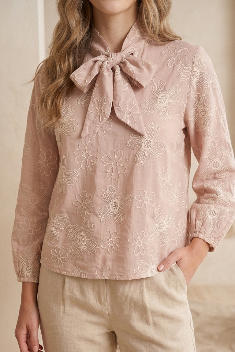 🌸🎀 Blusa Rosada Floral con Lazo 🎀🌸