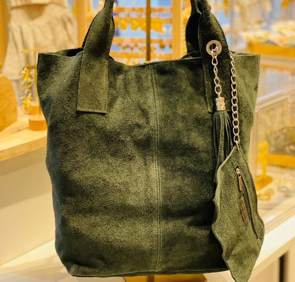 🌿✨ Textura suave, color profundo y doble estilo. Este bolso en verde oscuro tiene un acabado tipo velvet, con una apariencia afelpada que recuerda al terciopelo, pero con la resistencia y elegancia del cuero.