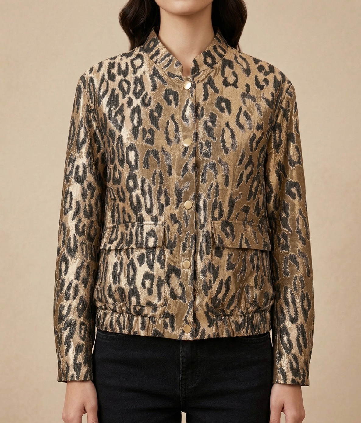 Prepárate para brillar con luz propia con esta prenda icónica que fusiona el glamour del metalizado con la fuerza del estampado de leopardo. 🐆💛 Nuestra chaqueta ‘Selva Dorada’ es mucho más que una cazadora; es una declaración de intenciones. 😉