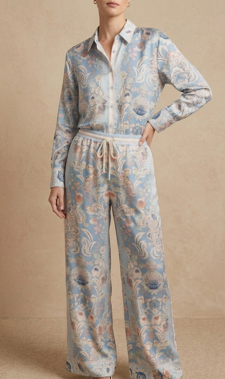Un conjunto celeste con estampado floral que transmite frescura y delicadeza 💙 perfecto para crear looks femeninos, suaves y llenos de encanto. Su diseño combina la tranquilidad del celeste con la belleza de las flores, logrando un estilo armonioso y elegante 🌸