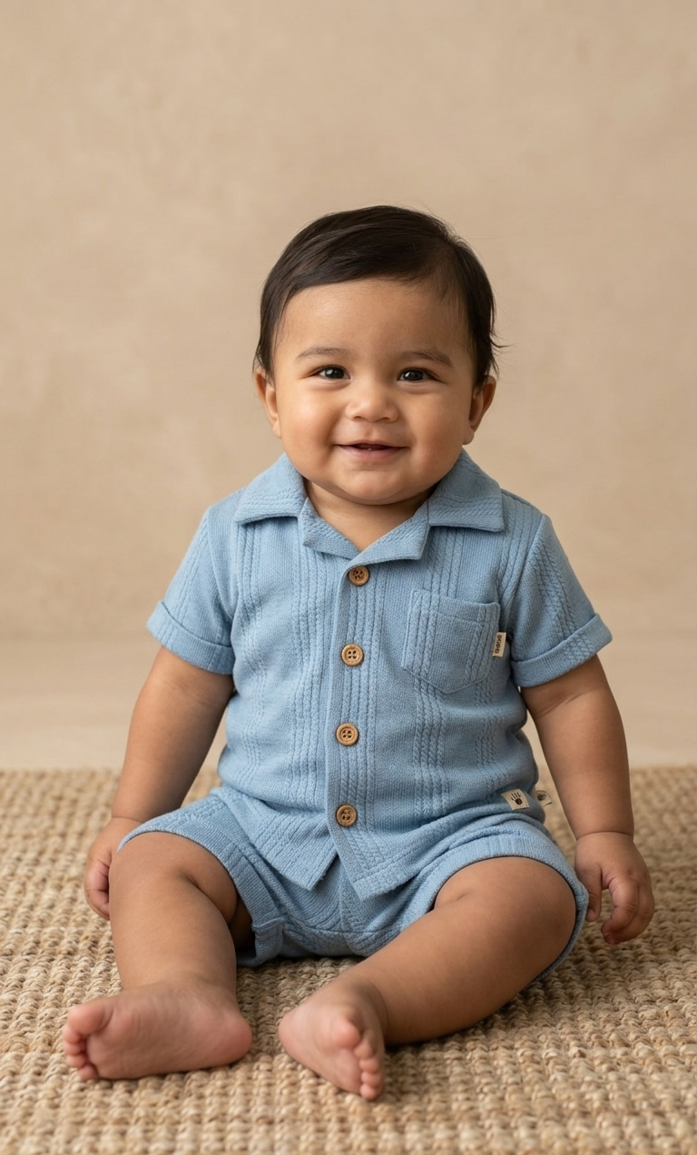 Un conjunto celeste para bebé niño que transmite dulzura y frescura 👶 perfecto para mantener a tu pequeño cómodo y con estilo en cualquier ocasión. Su diseño en tono suave aporta un look delicado y encantador 💙✨