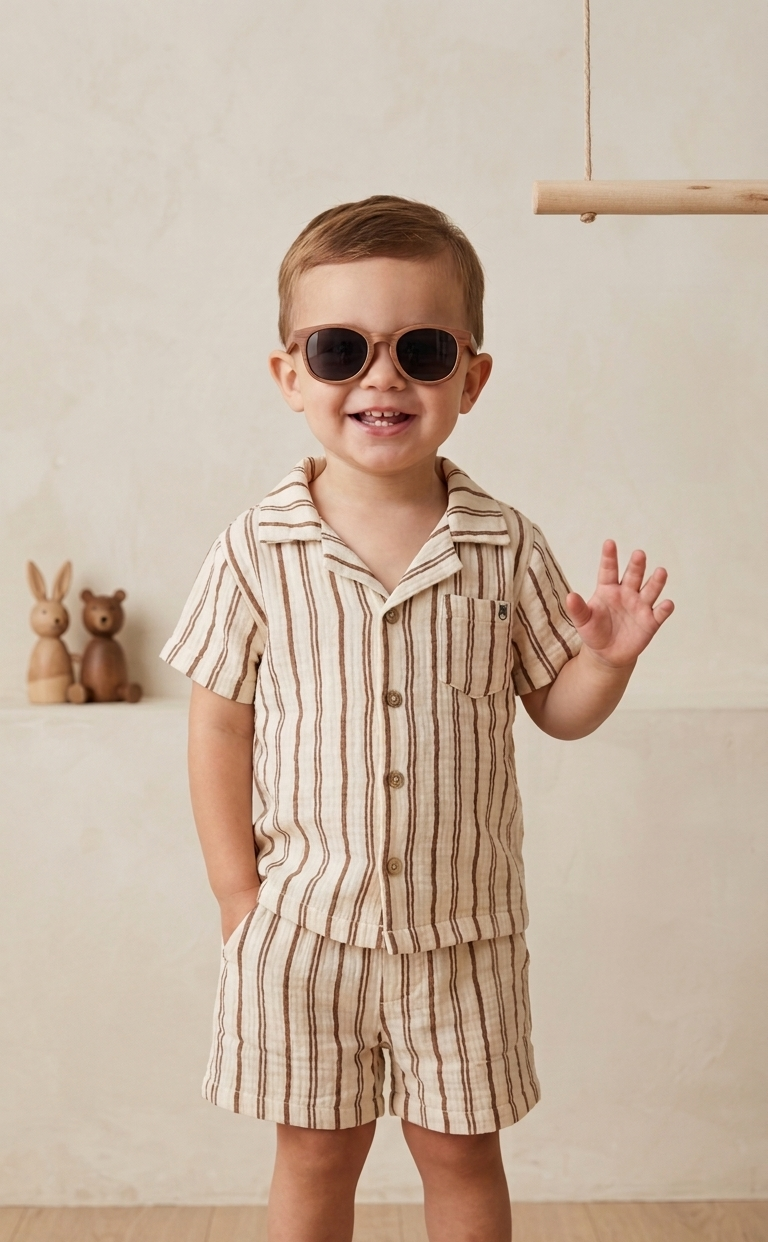 Un conjunto de rayas que combina estilo clásico con un toque moderno, acompañado de lentes para un look completo y lleno de personalidad ✨ perfecto para crear outfits frescos, cómodos y con actitud. Su diseño aporta dinamismo mientras los accesorios elevan el estilo 🕶️