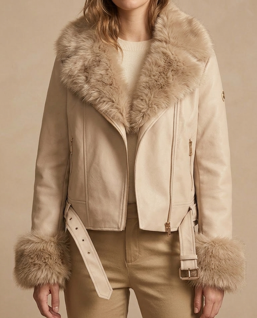 Elegancia y suavidad en una sola prenda 🧥💫. Esta jacket nude tipo fur es perfecta para darle a tu look un toque sofisticado, cálido y súper chic 😍🔥.