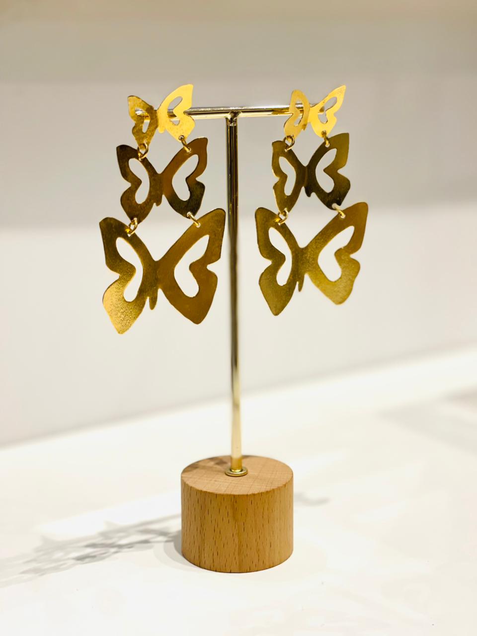 • Mía es una joya que habla de libertad, feminidad y sutileza ✨ Formada por tres piezas doradas con un encantador diseño de mariposa, estos aretes combinan movimiento y delicadeza en cada detalle.