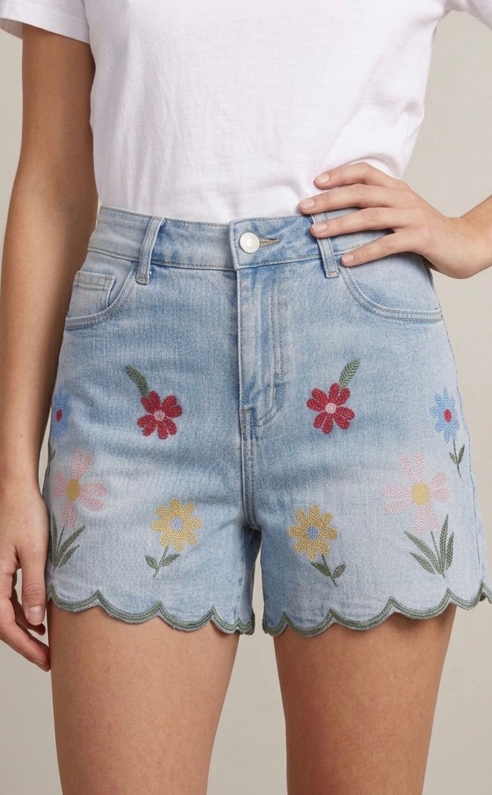 El Short Denim con Flores es una prenda fresca y juvenil que combina lo clásico del denim con un toque floral encantador 🌸✨. Su diseño con flores añade un aire alegre y femenino, perfecto para destacar en días soleados ☀️👖.