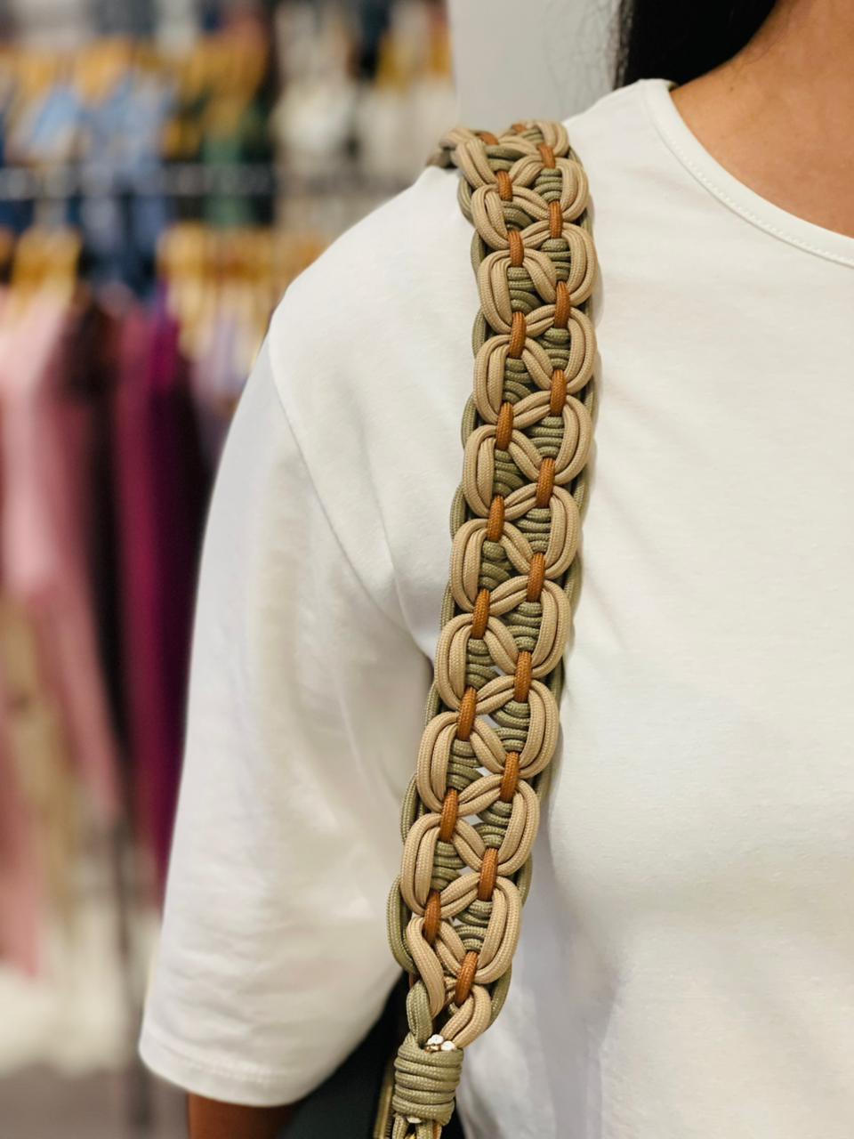 • El Strap Trenzado Tierra mezcla tonos cafés y verde que evocan naturaleza, calma y estilo 🌿🤎. Su diseño trenzado crea una textura única que transforma cualquier bolso en un accesorio con encanto natural y sofisticado.
