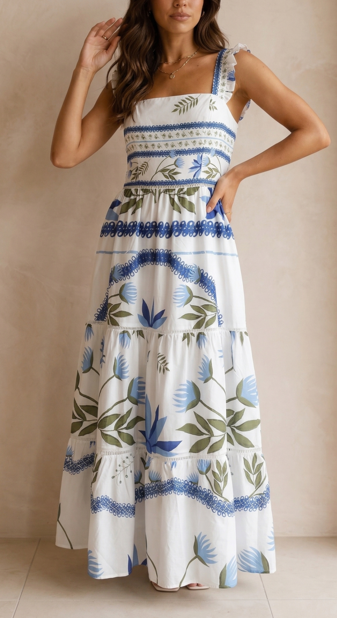 Un vestido fresco en tonos azules 💙, perfecto para los días de verano. Su estilo ligero y cómodo lo convierte en la opción ideal para lucir elegante y relajada 🌊✨