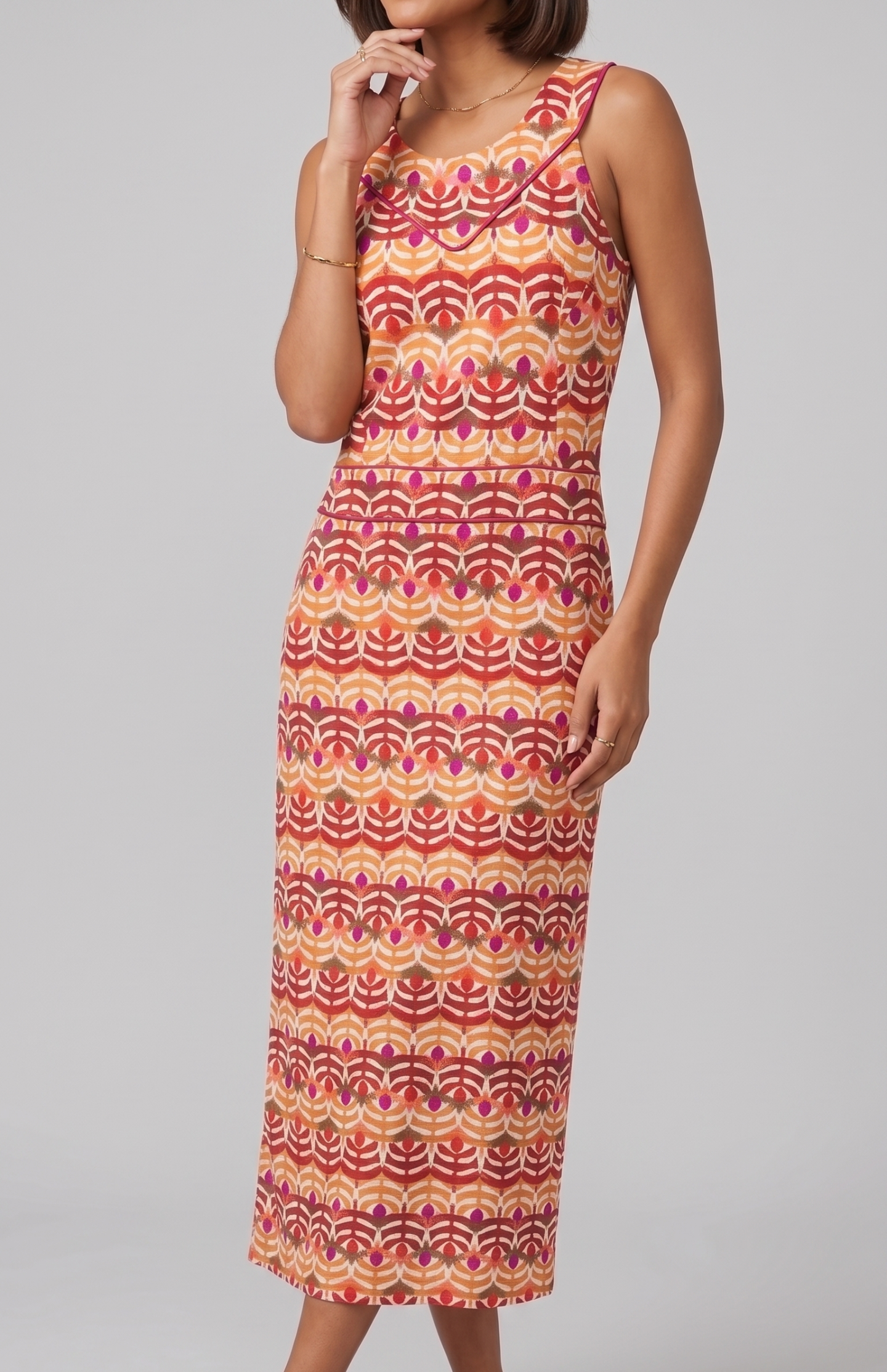 El Vestido Mosaico Tropical es una pieza vibrante y llena de estilo que aporta color, alegría y personalidad a tu look 👗✨. Su estampado tipo mosaico con tonos tropicales crea una combinación llamativa y moderna, ideal para destacar en cualquier ocasión 💜🧡🌿.