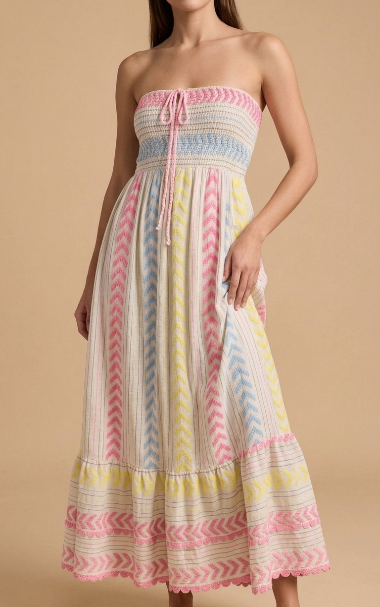 Un vestido strapless en tonos pastel que transmite dulzura y elegancia 🌸 perfecto para crear looks románticos, delicados y llenos de encanto. Su diseño sin tirantes resalta los hombros y aporta un aire sofisticado, mientras los tonos suaves crean un estilo armonioso y femenino ✨